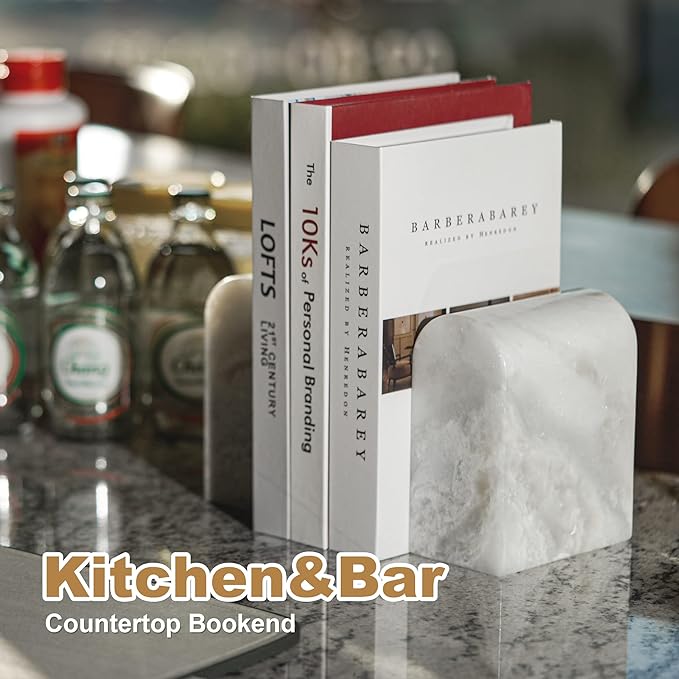 - Each Piece is Unique: Luxury natural marble book ends, the pure texture of Namib Fantasy is white and flawless, has rich white crystals, like glazed white jade, each piece is ONE OF A KIND.