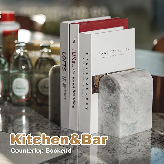 Koville African Natural Marble Bookends for Shelves, Non-Slip Book Ends, 13LBS Ultra Heavy Duty Marble Book Holder Organizer, Apartment Decor for Movies/CD/Video Games