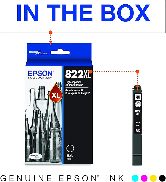 Epson Workforce Pro WF-4830 Wireless All-in-One Printer with Auto 2-Sided Print & EPSON T822 DURABrite Ultra Ink High Capacity Black Cartridge & EPSON T822 DURABrite Ultra Ink High Capacity Black