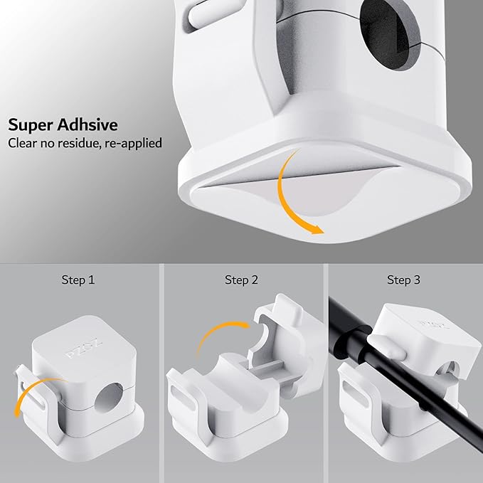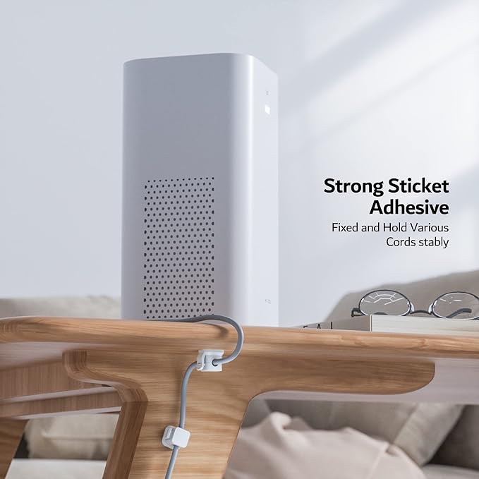 - 【No-Residue Adhesive】This cable organizer comes with a strong adhesive tape that can tightly adhere to any clean smooth surfaces. Adhered easily to desk, glass, metal, ceramic tile and other smooth surfaces. Clear the removable stickers will not damage surfaces. 【TIPS】When Sticking, keep pressing for 1-2 minutes to enhance the adhesion of the sticky pad. Please wait 12-24 hours before using.