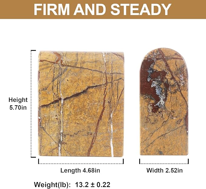 - Sturdy and Solid: This bookends for shelves is weighted 13 lbs and uses natural marble, theyβre strong enough to bookend an entire set of Encyclopedia Britannica. Bonus 4 non-skip feet and unique round arch design support your heavy books more secure in place.
