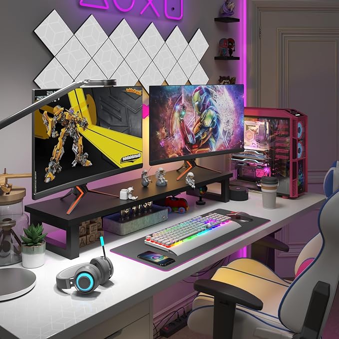 - 【Monitor Stand for 2 Monitors】This stand is an ideal choice when you need computers to work together. Unique original design,patented products,this dual-monitor stand features a sturdy construction black with a rustic brown wood finish for an added rustic and unique look.