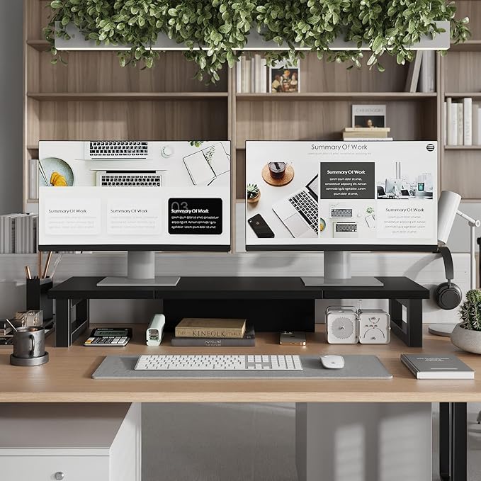 - 【Multifunctional Monitor Riser 】The monitor stand has powerful storage function of keeping the table clean.It can be used as a monitor stand riser, printer stand, laptop riser, or a TV stand, makeup, animals. Extra storage space underneath organize your office supplies.
