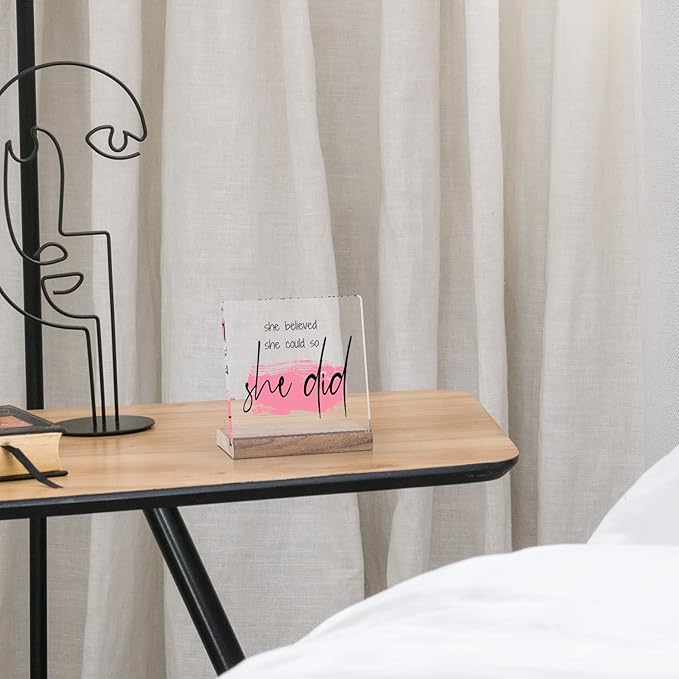 Inspirational Gifts for Women Friends - Motivational Gifts,Promotion Gifts New Job Gifts for Women Congratulations Gifts, 4" Acrylic Plaque - "She Believed She Could So She Did" Home Office Desk Decor