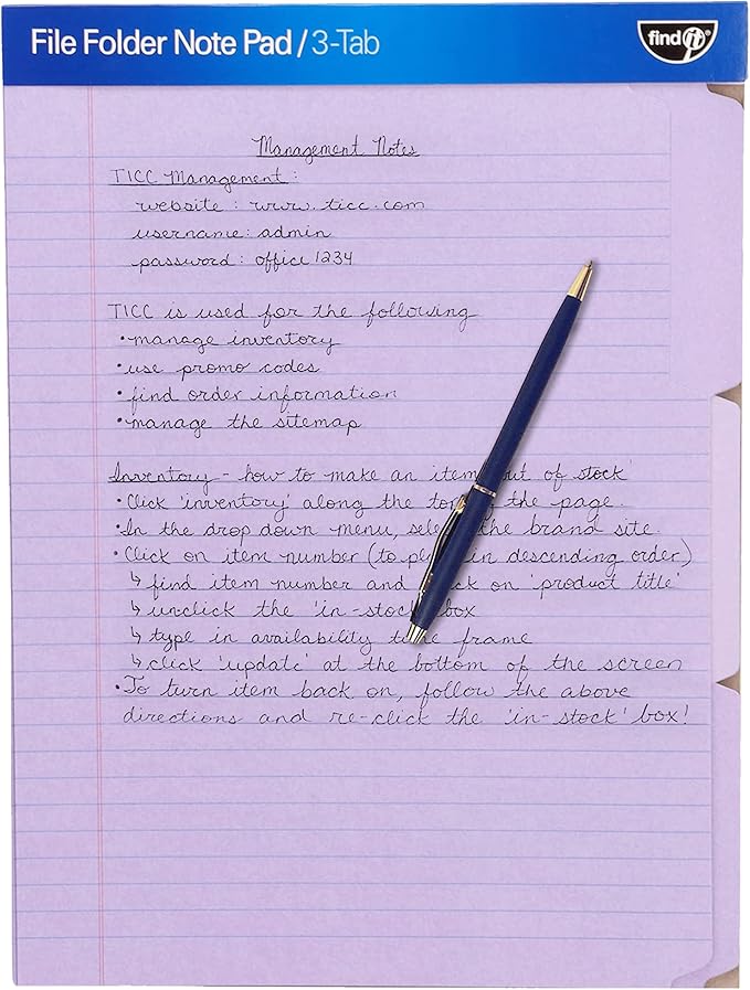 - WIDE RULED - The patented design of these notepad manila folders has changed the paper filing game forever. The wide-ruled pocket offers a place to keep your notes and documents in one place.