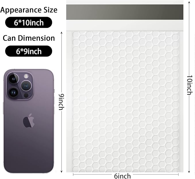 - <b>✨【Bubble Mailers Size】</b> Exterior Size: 6 x 10 inch. Usable size: 6 x 9 inch. our mailer envelopes are lined with unique air cellular layers and 360°strong air bubble technology, which can help absorb shock during shipment and provide effective shipping protection for your products.<br>
