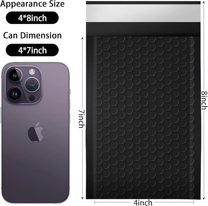 - <b>✨【Bubble Mailers Size】</b> Exterior Size: 4 x 8 inch. Usable size: 4 x 7 inch. our mailer envelopes are lined with unique air cellular layers and 360°strong air bubble technology, which can help absorb shock during shipment and provide effective shipping protection for your products.<br>