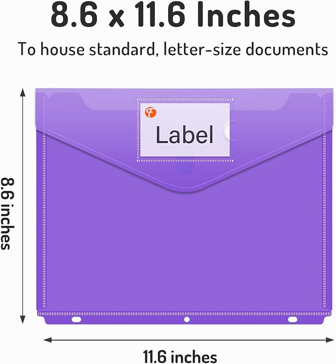 - Large Capacity: Measures 8.6 x 11.6 inches, perfectly fitting letter-size documents (8.5" x 11"). Holds over 50 sheets with ease. Great for storing documents, stationery, charts, invoices, accessories, home supplies, photos, and more.