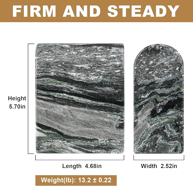 - Sturdy and Solid: This bookends for shelves is weighted 13 lbs and uses natural marble, theyβre strong enough to bookend an entire set of Encyclopedia Britannica. Bonus 4 non-skip feet and unique round arch design support your heavy books more secure in place.
