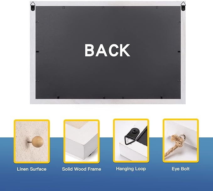 - 【Stylish White Linen Design】This bulletin board consists of a White Linen surface and a white wooden frame. Equipped with 10 pins , the uniform tone gives it a premium and stylish look. It looks great whether displayed on a podium or hung on a wall at home, school, office or dormitory. If you are looking for a stylish vision board, it will be a good choice.