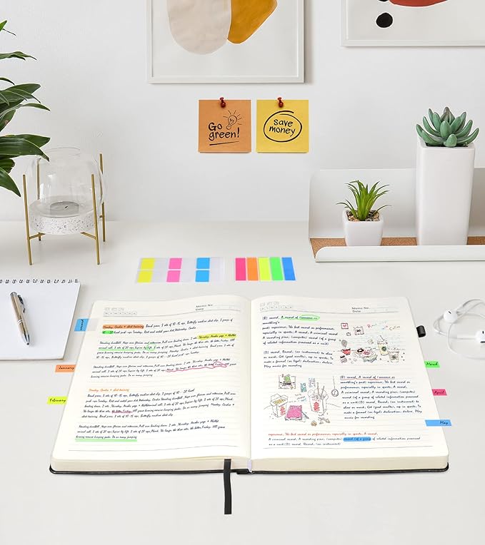 - 【180°Lay Flat Journal Notebook】The 180° lay flat design makes writing easier, reading more convenient, and taking notes more efficient.At the same time, the hardcover notebook is designed with1 elastic closure band & 1 elastic bookmark band. to make it tightly closed to protect your content, and the inner paper will not be curled and kept flat.