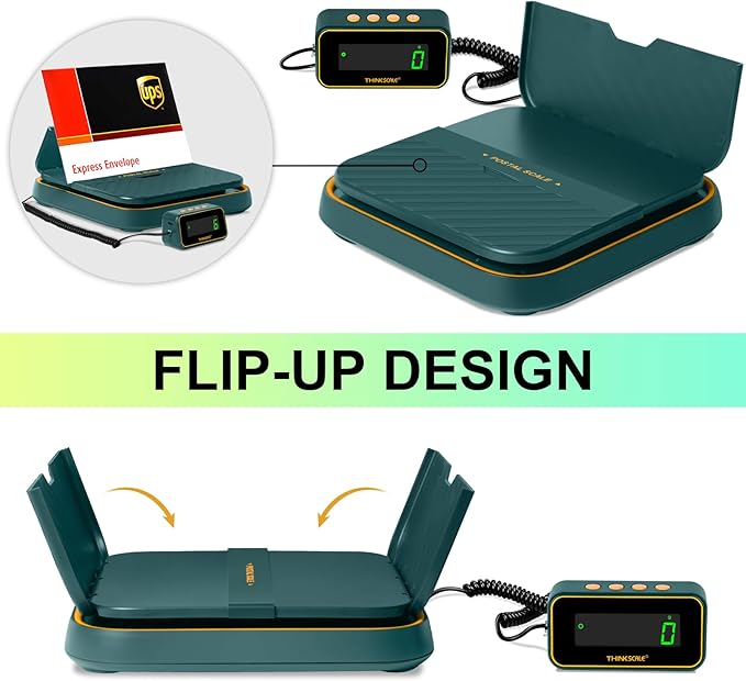- Twin Fold up Holder & Easy STORAGE: The packaging scale platform with two way sided fold up mailer holder that flip up lid 90°are useful in holding light and flimsy packages on the scale. And its light weight and small, doesn't take up any office space, which you super easy to store and get out to use.
