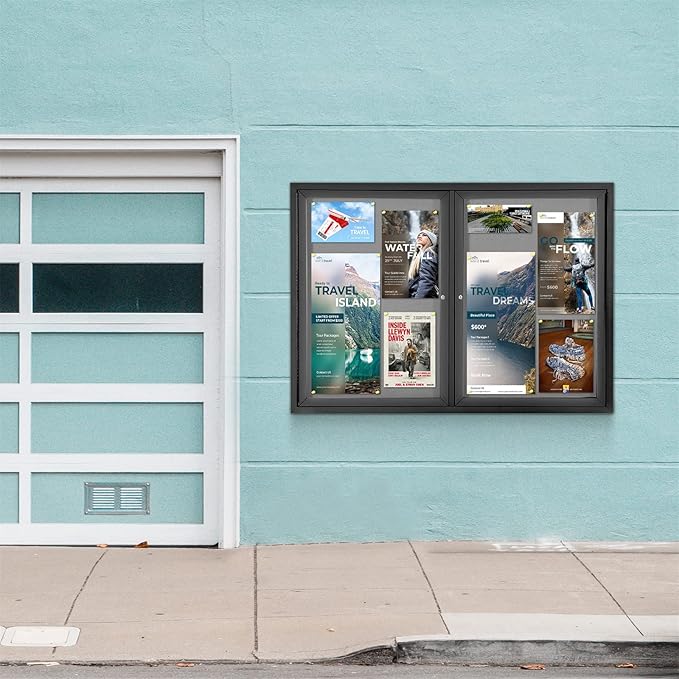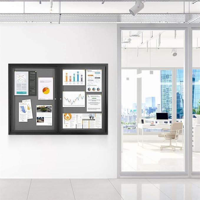 - HIGH-QUALITY MATERIAL:It is made of grey felt pin board, waterproof aluminum construction, shatter-resistant acrylic door and aluminium-plastic panel