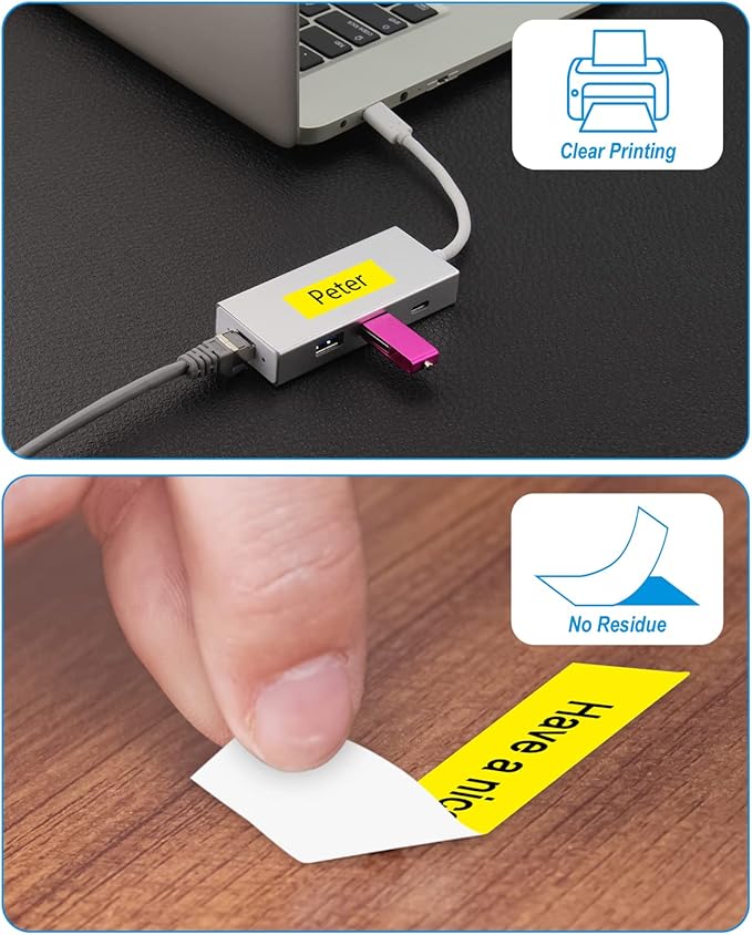- Versatility: The tze 12mm tape with standard adhesive that is designed to stick to a variety of surfaces, including organizing files and folders, labeling storage containers, making it ideal for labeling items both indoors and outdoors