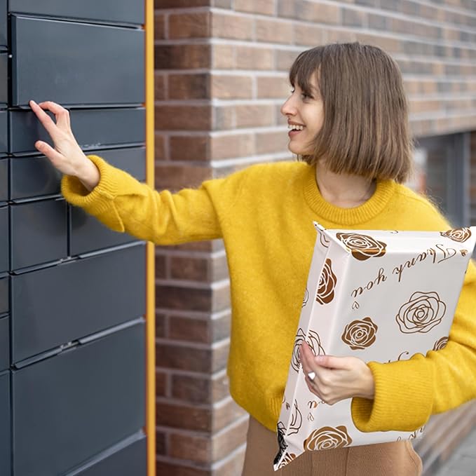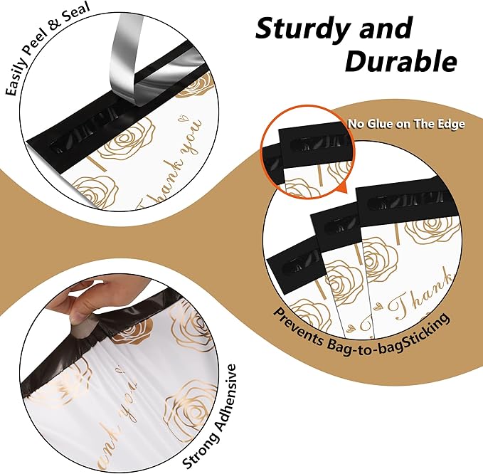 Thank You Poly Mailers 10x13 Inch 25 Pcs - Gold Rose Printed Shipping Bags for Clothing - Waterproof and Tear Resistant Mailing Envelopes - Self-Sealing Packaging Bags for Small Business