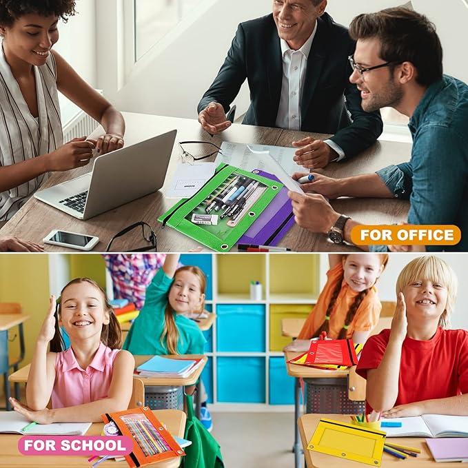 - Apposite Size: Each binder pencil case with smooth zipper is 9.8 inches x 7.1 inches, the zippered pencil bags have 3 copper holes (The distance between the holes is 4.3 inches), suitable for the standard 3 ring binders, can be placed in folders. Available in bulk back to school and office supplies to save your costs.
