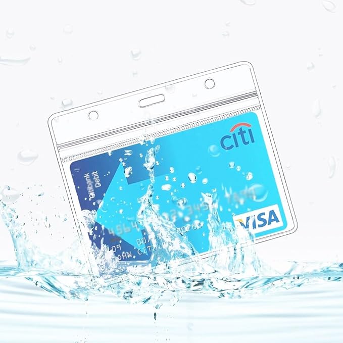 - It's waterproof! The re-sealable pouch keeps your name tags, credit card, badge, or hotel keys safe and dry. Comes with three pre-punched holes for attaching many styles of strings, chains, clips or lanyards.