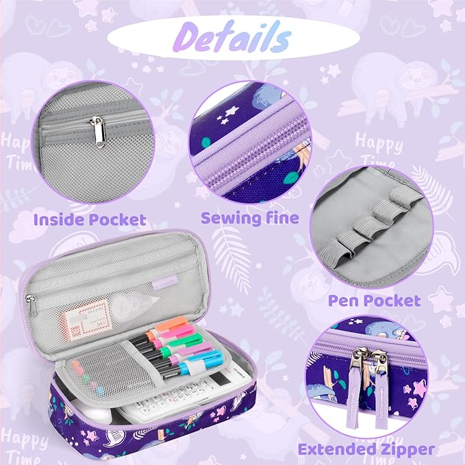 Choco Mocha Sloth Pencil Case for Girls, Soft Pencil Case Kids Pencils Pouch for Kindergarten Girls, Purple