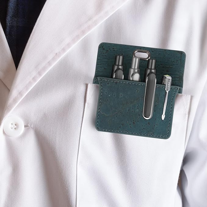 - Extended Pocket Protector Flap: Unlike a standard PU or leather pocket protector for shirts, these high quality cork shirt pocket protectors feature a longer, 2 inch front flap. This extended flap allows for ease of use while wearing heavy duty work shirts and lab coats.