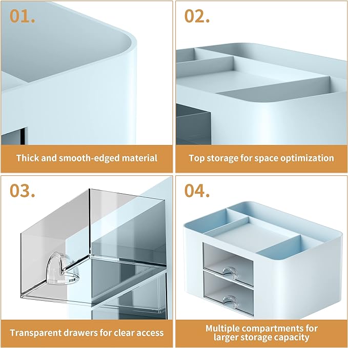 - 【Convenient And Multifuction】This Desk Caddy is no installation required not only perfect for storing your desktop stationery and many other desk widgets but also great for storing your makeup brushes, nail polishes, lipsticks, and other small personal items sorted by type. The transparent drawer makes it way easier to find what you need! and You can put any other daily necessities on the organizer, It helps you keep your stuff organized