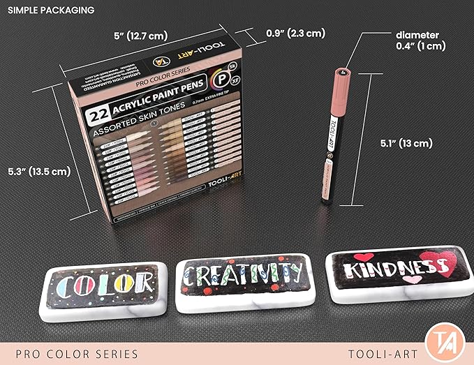 Acrylic Paint Pens 22 Skin Tones Assorted Pro Color Series Markers Set 0.7mm Extra Fine Tip for Rock Painting, Glass, Mugs, Wood, Metal, Canvas, Projects, Non Toxic, Waterbased, Quick Drying