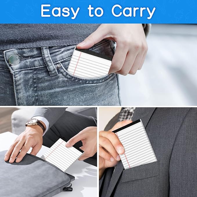 - 【Portable Design】These notepads are compact and can easily fit into a handbag, a briefcase, or a backpack, enabling you to have them handy at all times. The 4x6 size lined notebook is perfect for use as a message board, shopping list, grocery list, and to-do list in anywhere.