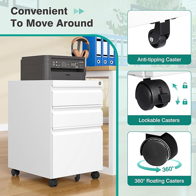 - ✔️☆【ADD MORE MOBILITY】This rolling file cabinet arrives with five casters, including two front casters with braking function and one center caster to prevent tipping