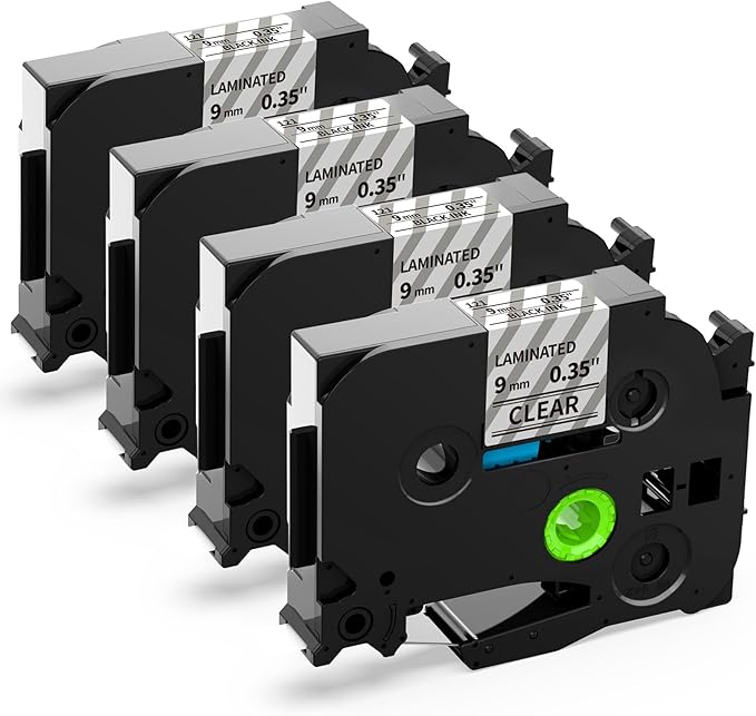 - Durability labels: Compatible with Brother p touch label maker 9mm clear tapes are laminated tape. It has features of withstand water/ oil/ abrasion/ temperature/ fade resistant, etc. Strong adhesive but zero sticky residue when removed. Split backing for easy peeling