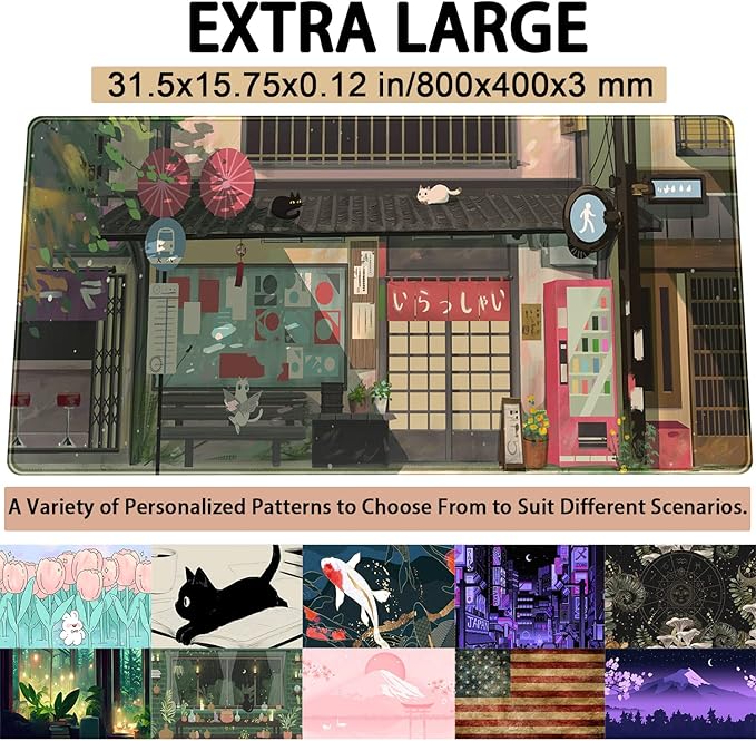 Cat Cafe Desk Mat Cute Anime Mouse Pads, Kawaii Desk Pad Large Gaming Mousepad XXL 31.5x15.75 in, Japanese Street Aesthetic Keyboard Mat Pad, Laptop Computer Desktop Decor Mat for Women Office