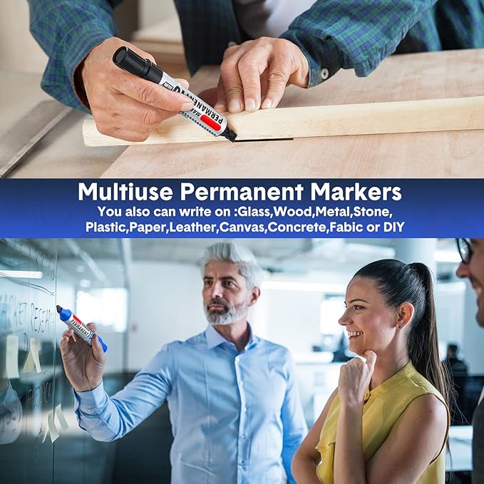 - Multi Use: these permanent marker sets have a wide range of applications, including powerful ink marks on wet and oily surfaces, for industrial work on wood, metal, plastic, stone, glass