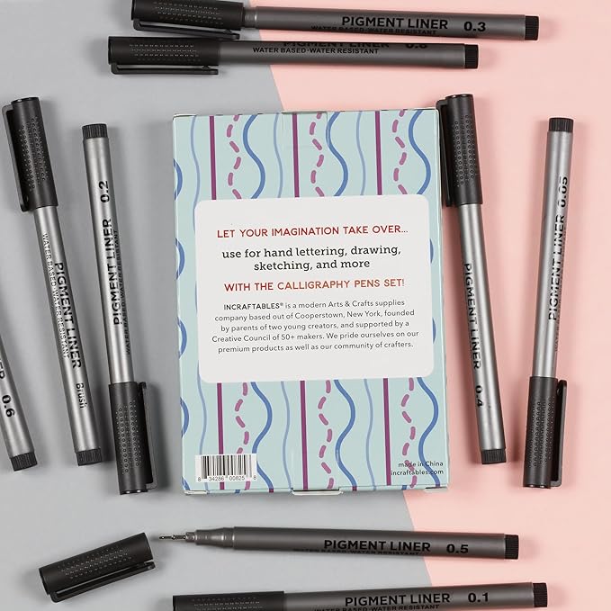 - COMPLETE CALLIGRAPHY PEN SET: Includes 8 precise tips (0.05mm to 0.8mm) plus 1 versatile brush pen, perfect calligraphy pens for writing clean lines and bold strokes.