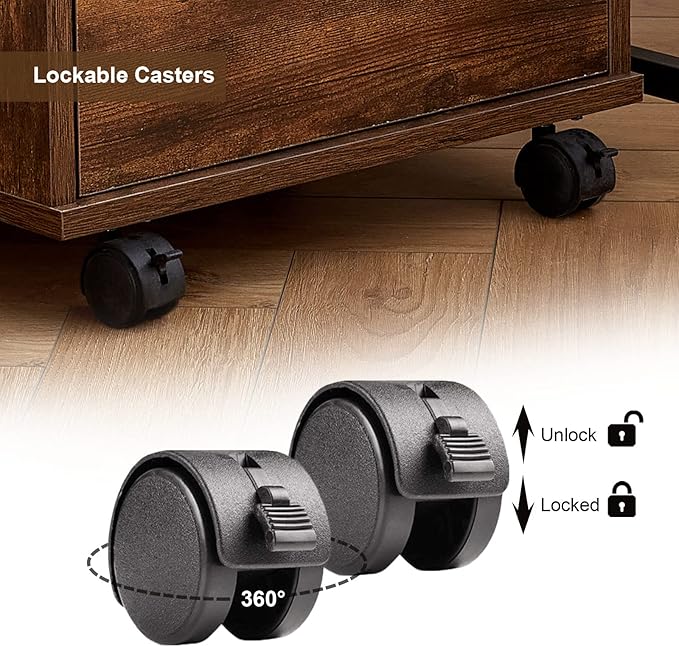 - Effortlessly Mobile with Locking Casters: Features four 360° swivel wheels for easy movement anywhere. The two front lockable casters keep the cabinet firmly in place when stationary, preventing unwanted rolling.