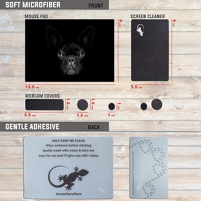 Mouse Pad Adhesive Bottom - Sticks to Any Surface - Portable - Webcam Covers and Screen Cleaner Included (2 Pack - Dog Set)