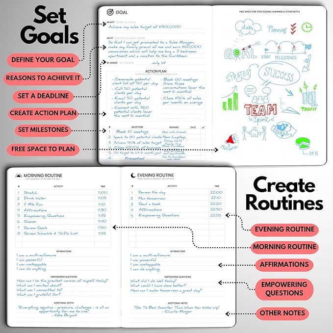 - STAY ALIGNED WITH YOUR GOALS – Use built-in goal-setting tools and review prompts to stay focused on long-term success—whether you’re managing business milestones, career growth, or personal development.