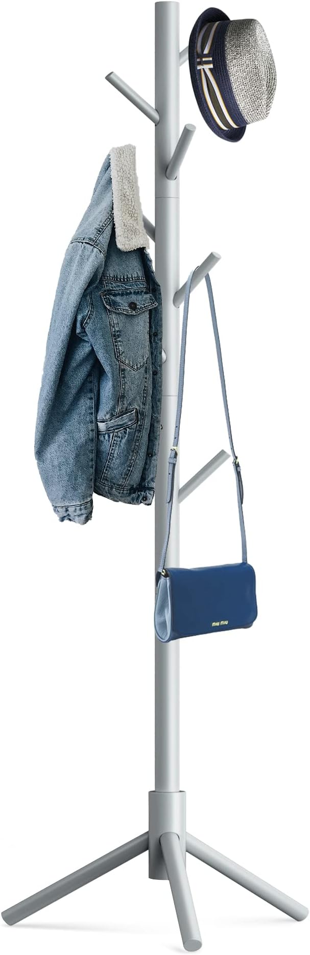 Wooden Tree Coat Rack Stand,Sturdy Freestanding Coat Rack with 8 Hooks,3 Adjustable Height for Child Adult,Wood Coat Stand Tree Fits Entryway Bedroom Office for Bags,Hats