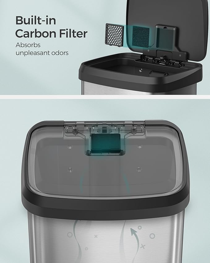 - [Thoughtful Detailing] The carbon filter in the lid helps absorb unpleasant odors, keeping your kitchen smelling fresh. Included are 15 liner bags (16-18 gallons) that perfectly fit this kitchen can