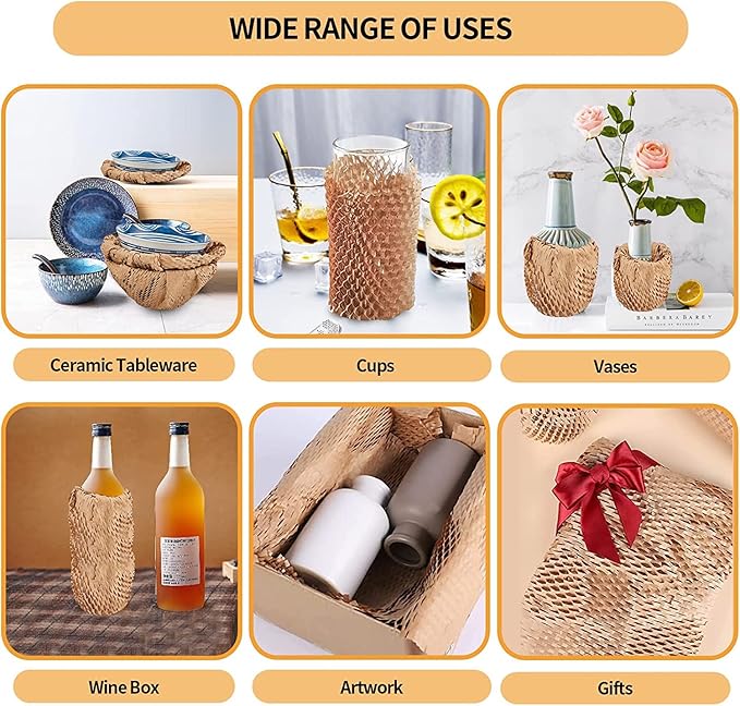 - Environmental Friendly Packing Supplies: Eco friendly 100% biodegradable kraft paper, green alternative to plastic packaging materials .After stretching, the honeycomb structure can increase the cushioning performance and effectively protect the items that need to be wrapped.b packing paper.