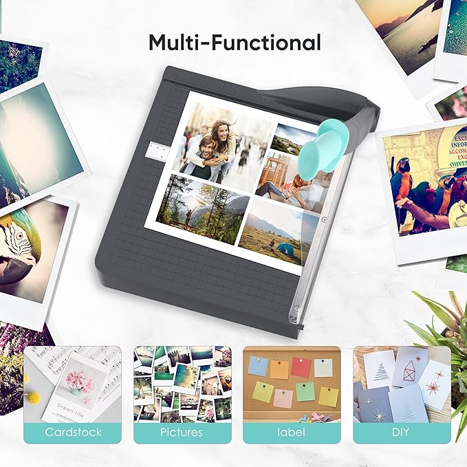 - 【Multi-Functional】 This paper cutting is nice tool for cutting typical 8.5 x 11-inch printer paper, sticker sheets, or heavy-weighted cardstock, pictures, label, cards in crafting, DIY, scrapbooking crafts, wedding invitation cards and greeting cards suit for home, office, and school./paper cutter heavy duty/guillotine paper cutter/paper slicer/large paper cutter