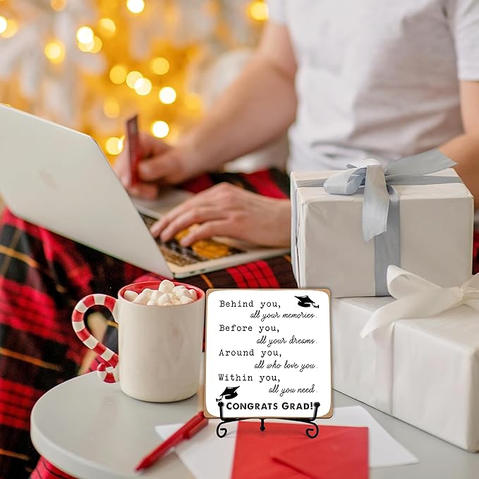 Graduation Decorations, Graduation Gifts for Class of 2026, Inspirational Desk Decor Wood Plaque with Stand, Congrats Grad Gift for Senior College Graduated Women Girl-A31