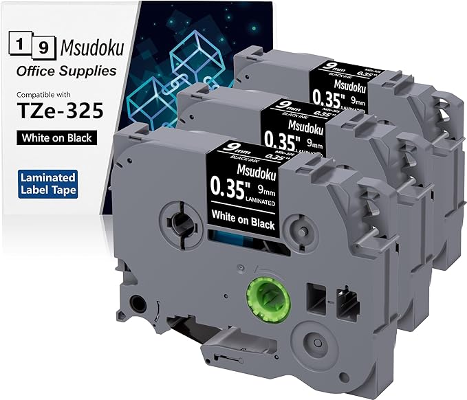 - Msudoku Tze Tape Features: Compatible for brother p touch label Tape is Laminated, Water Resistant, Abrasion Resistant, Grease Resistant, Grime Resistant, Temperature Resistant, Sunlight Resistant