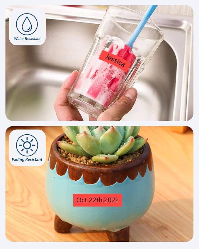 - Size - 3/4" width x 26.2' length ( 18mm x 8m ) each 18mm label maker tape. Color - Black ink on red tape