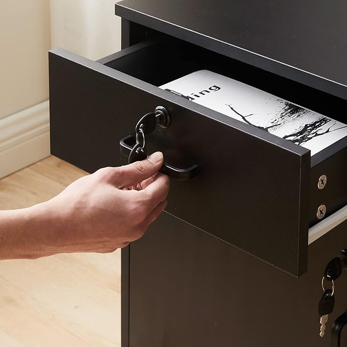 - 【Ample Storage Space】 With its large capacity storage design, this cabinet offers plenty of room for all your essentials. The drawers are perfect for small items, while the locker can accommodate A4 paper documents and important work folders. Say goodbye to clutter and hello to organized efficiency.(Not Have Hanging Rails)