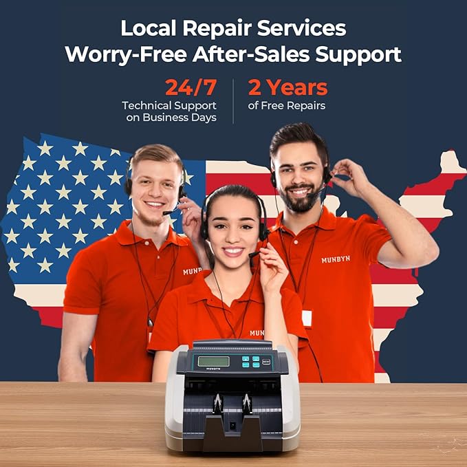 - [100% Satisfaction] Committed to providing a comprehensive money-handling solution, MUNBYN has a complete product line and technical assurance. For all our products, we provide- 1. 24-hour technical support available on weekdays. 2. Local fix point. 3. Lifetime upgrade program for the new versions or currencies bills.
