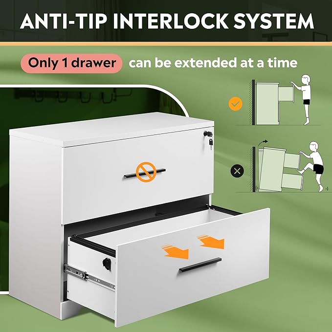- ANTI-TILT Mechanism: It is vital that only 1 drawer at a time can be opened, this wood file cabinet provides maximum flexibility and anti-tilt.