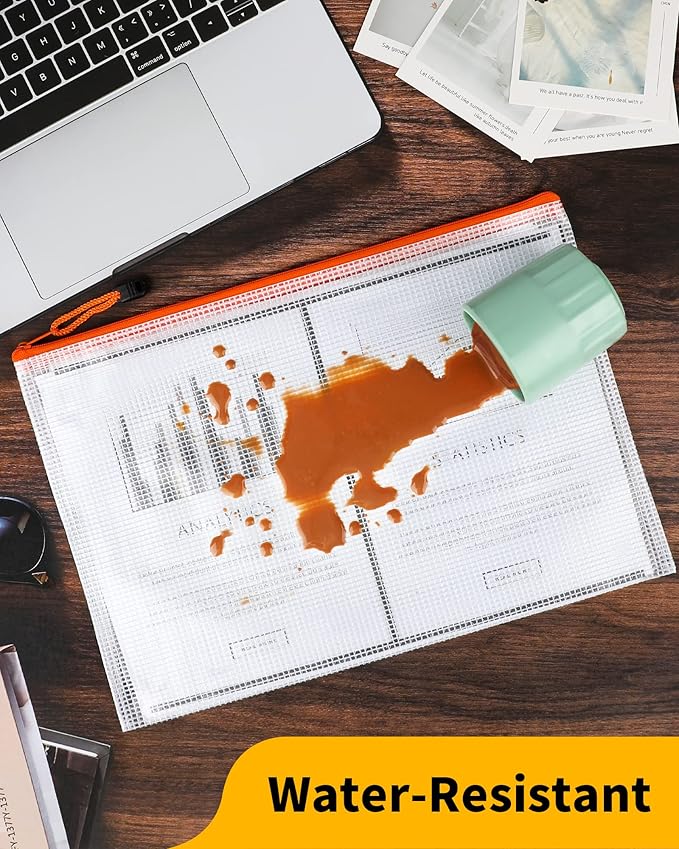 - 【GOOD QUALITY MATERIAL】The zipper bag is made of good quality thickened PVC mesh material, soft and foldable, waterproof and moisture resistant, very strong and resistant, not easy to tear. The file bag is foldable, so it can be easily stored and keep items in order