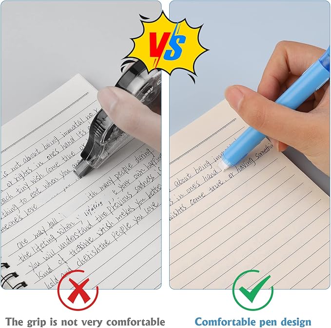 - Comfortable Pen Design: Our correction tape looks like a pen, comfortable to hold, easy to use, suitable for right-handed and left-handed, allowing you to easily correct mistakes