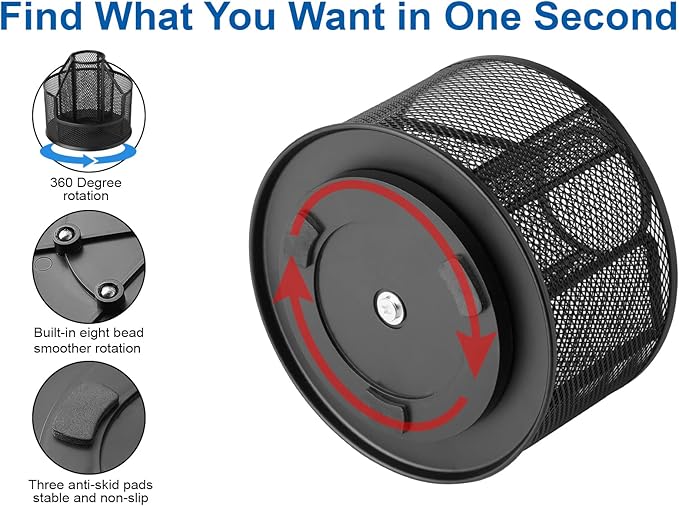 - ✎【Stable 360 Degree Rotating Design】 This rotating desk organizer has a 360-degree rotation of chassis with reinforced anti-skid pad, this makes it very stable and no damage to your desktop; and can rotate left and right 360 degrees very smoothly without worrying about getting stuck. You can rotate to your front at any time to access items at the easiest angle, making them more efficient and improving your work efficiency.
