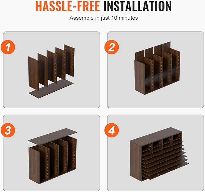 - Assemble in No Time: Our literature organizer sorter is incredibly easy to install, thanks to its simple panel design. With the included assembly instructions, you'll be guided through every step of the process, making it a breeze to complete the installation in just 10 minutes!