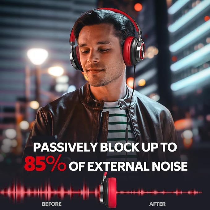 - Better Silence Better Sound: 360 surrounding Over Ear Noise-Isolation construction allow you to block-out up to 85% ambient sounds and disruption. Plus its 40mm DLC dynamic driver to deliver well-balanced bass and treble performance combined with a clear stereo mid range, you can easily get a truly focused immersive listening experience when studying or playing