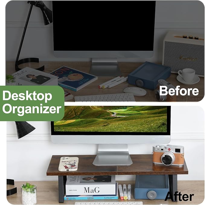 - 【Spacious Wood Surface】The rustic brown wood surface area is large and wide enough to hold your monitor/ laptop & docking station, it is smooth, comfortable, and trendy.